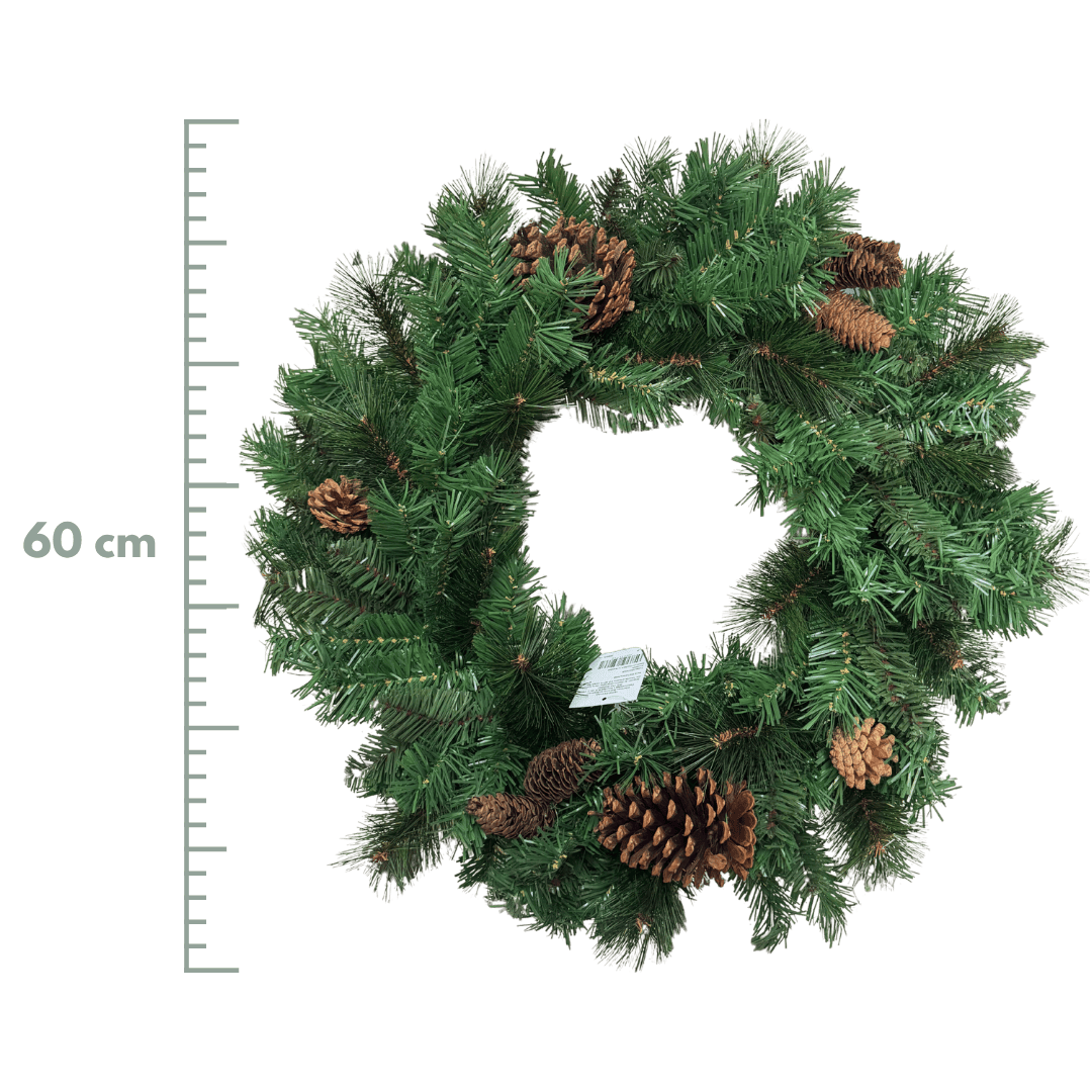 Dale vida a tu decoración con esta corona verde de 60 cm adornada con piñas que aportan un toque natural y festivo. Perfecta para alegrar cualquier espacio, su tamaño ideal la hace fácil de colgar y combinar. ¡Haz que tu hogar baile al ritmo de la naturaleza con esta corona encantadora y llena de energía!