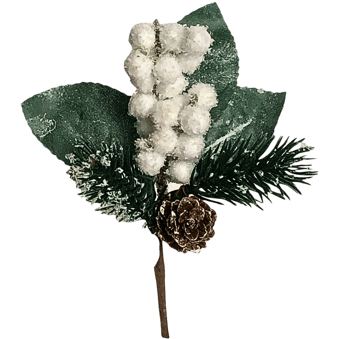 FLA01451 Pick pino nevado con piña 17 cm blanco |