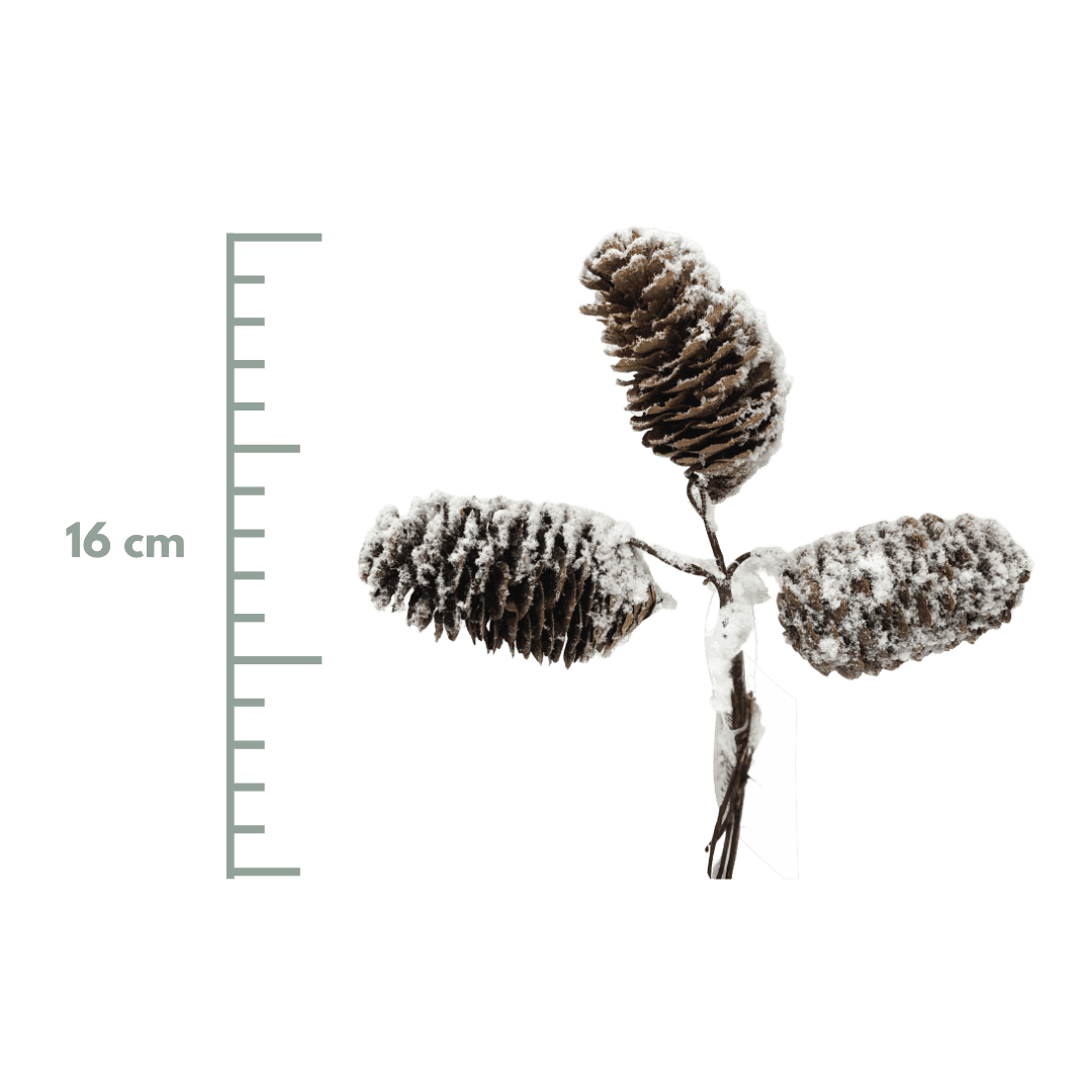 Rellena tu pino navideño con este pick de 3 piñas nevadas de 16 cm |