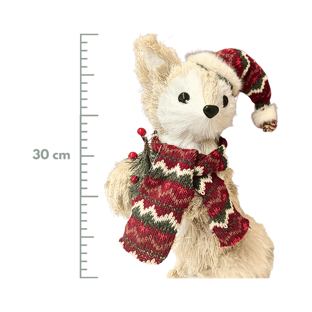 Este zorro decorativo mide 30x18x17 cm y viene con una bufanda roja que le da un toque acogedor y único. Perfecto para añadir un detalle cálido y original a cualquier espacio, ya sea en casa u oficina, aportando un ambiente amigable y cómodo. Su tamaño permite colocarlo fácilmente en estantes, escritorios o mesas, brindándote un accesorio que une estilo y calidez en un solo objeto.