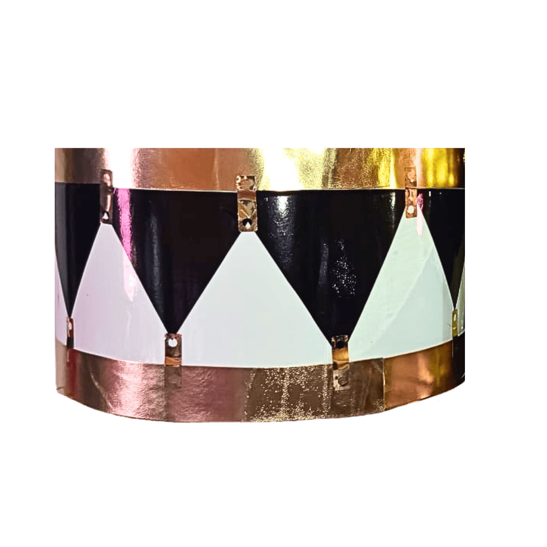 Estos tambores bicolor en negro y blanco, disponibles en varios tamaños, cuentan con elegantes detalles dorados que aportan un toque distintivo. Perfectos para quienes buscan un instrumento visualmente atractivo y funcional, ofrecen versatilidad para diferentes estilos y presentaciones. Su diseño cuidado facilita tanto el uso profesional como el amateur, haciendo que cada interpretación sea especial y memorable.